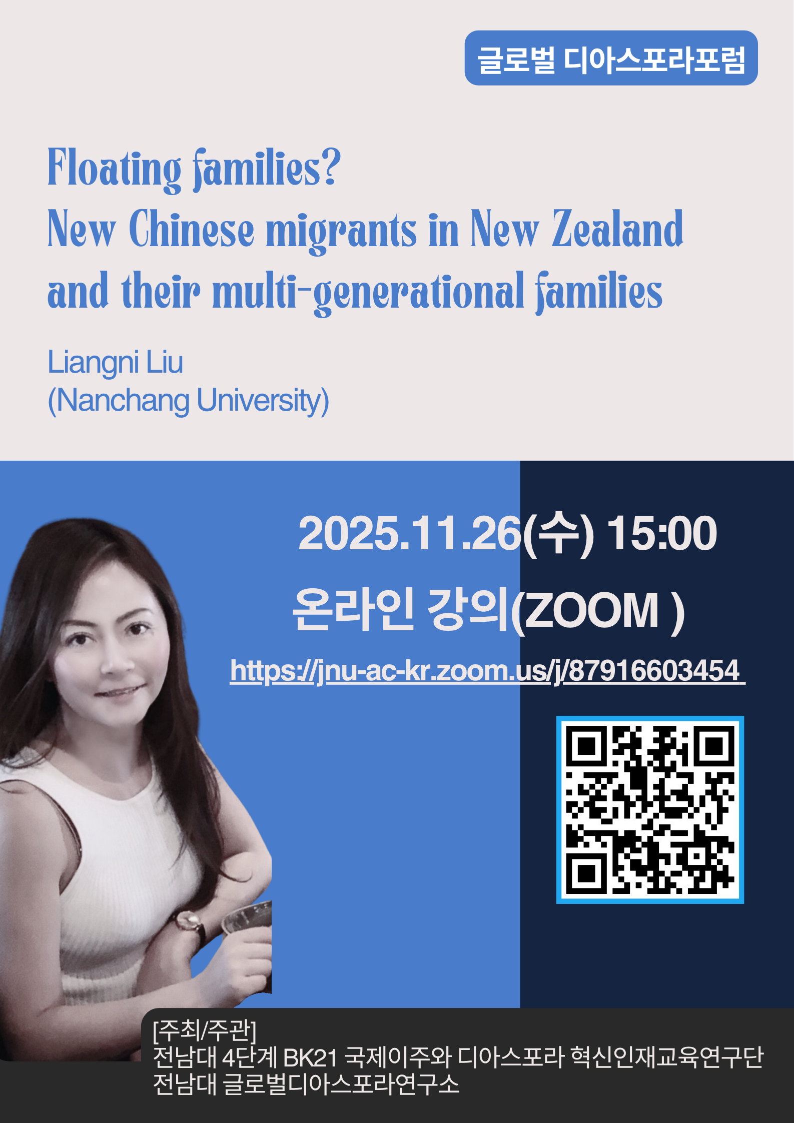 *강연주제 : Floating families? New Chinese migrants in New Zealand and their multi-generational families (영어 강의)