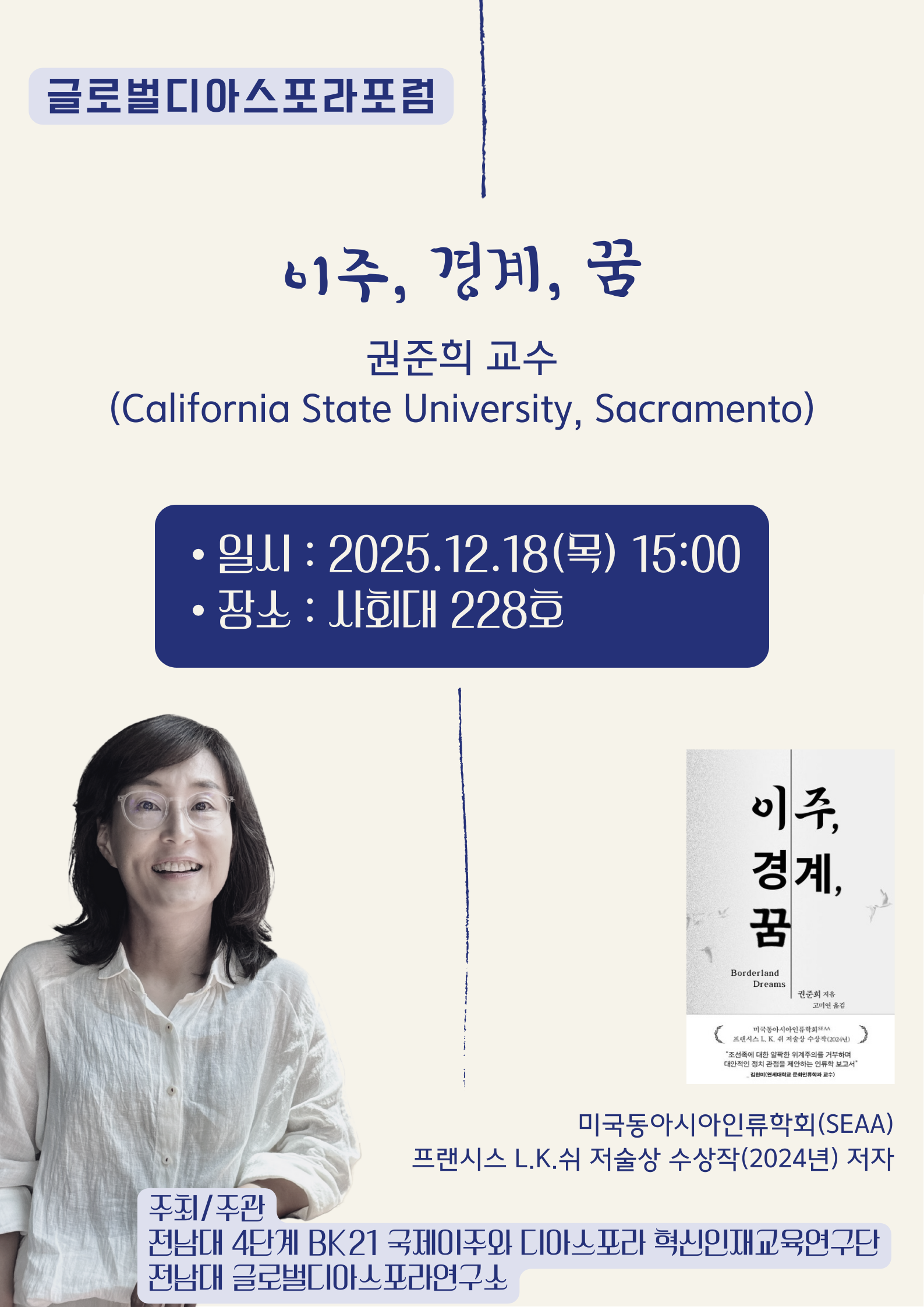 [글로벌 디아스포라 포럼] 이주, 경계, 꿈 (권준희 교수 특강)
