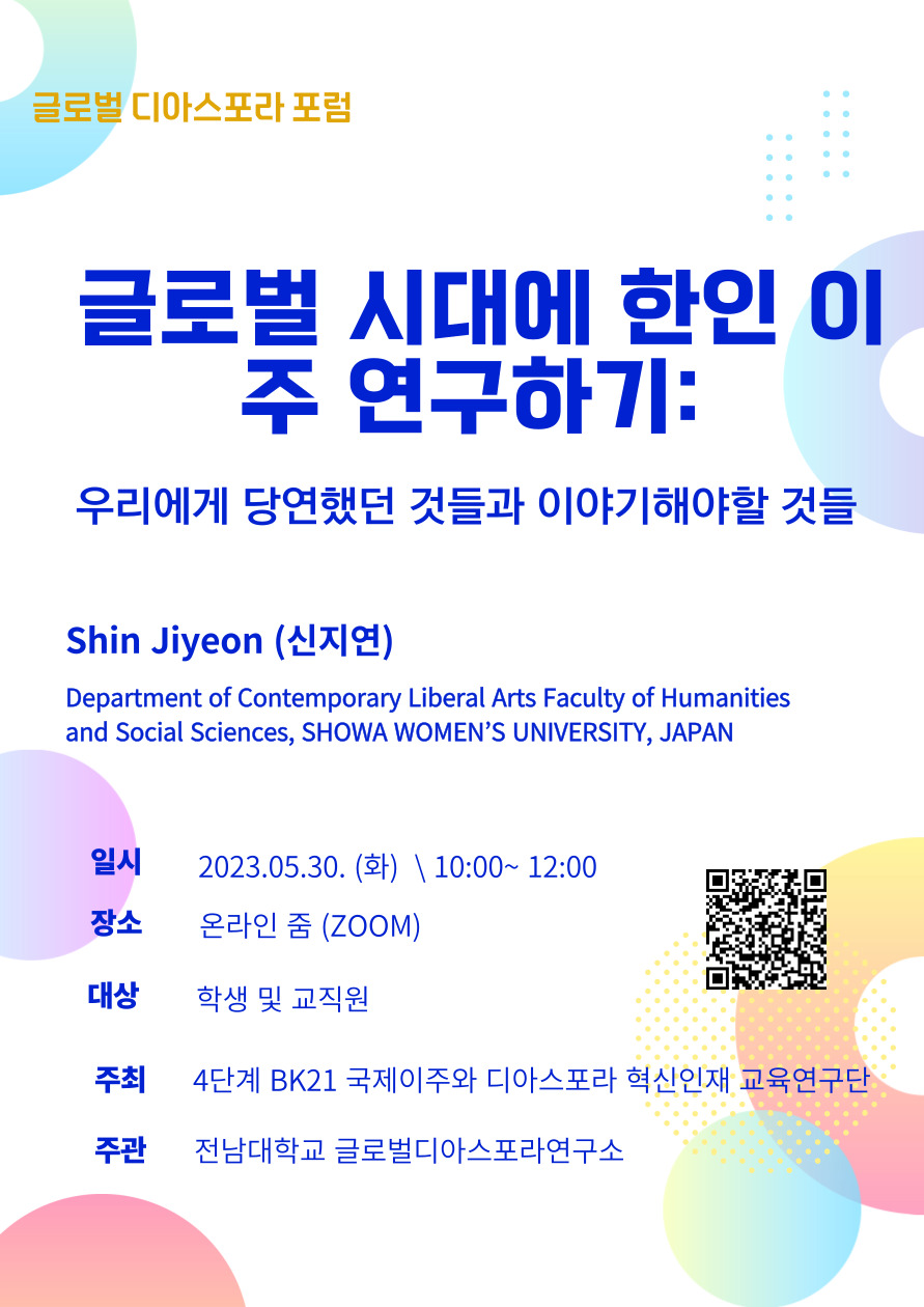 2023년 5월 30일(화) 10시 글로벌 디아스포라포럼 개최 - Shin Jiyeon (신지연) 교수 특강